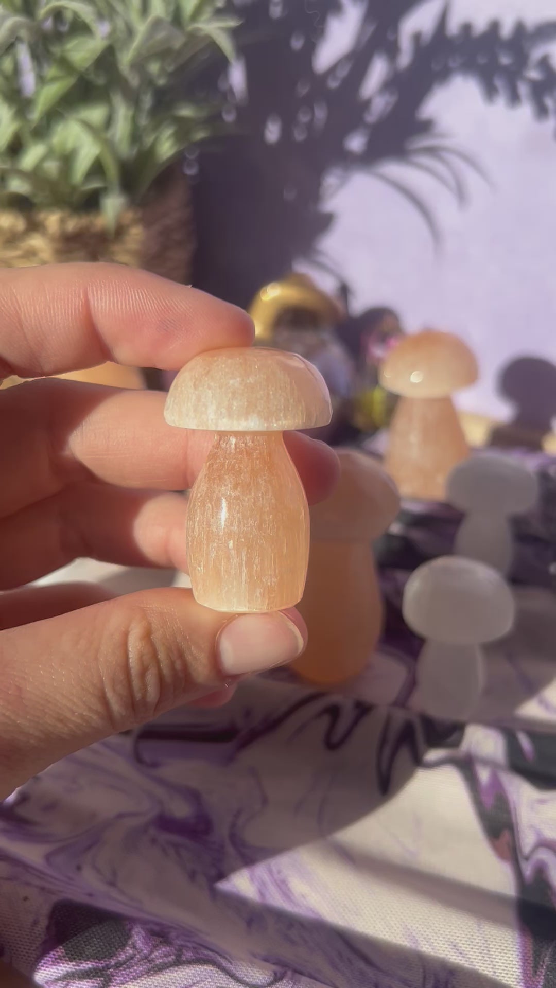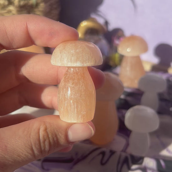 About: Our Peach Selenite Mushroom Carvings are enchanting pieces that bring a sense of calm and creativity. With its connection to the Sacral chakra, Peach Selenite enhances emotional balance, stimulates creativity, and promotes vitality. These mushroom carvings are perfect for meditation, artistic inspiration, or as a unique addition to your decor. Feel the gentle energy of Peach Selenite as it uplifts your spirit, fosters self-expression, and brings harmony to your space.